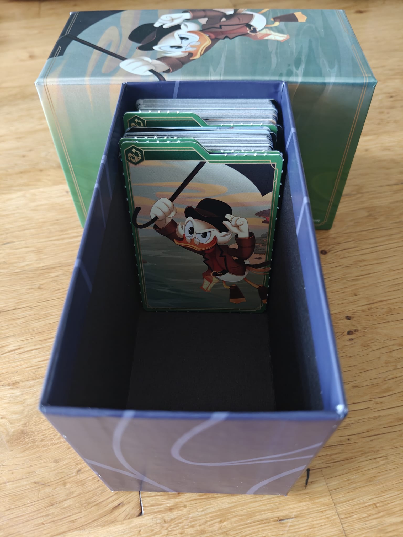 Het doosje van de Giftbox biedt ruimte voor ongeveer 250 kaarten in sleeves. Je kunt de kaarten scheiden met behulp van de uitdrukbare dividers. Het karton in de Giftbox is hier speciaal voor bedoeld.